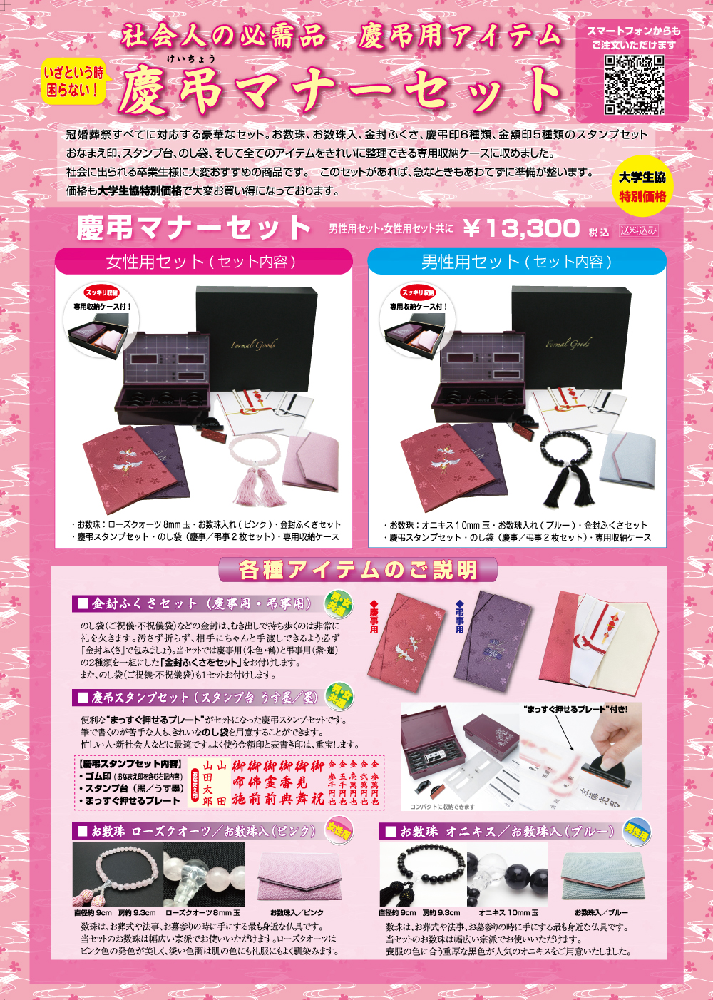 本サイトは本校を卒業し新社会人となる皆様に慶弔マナーセットをご注文いただくページです。