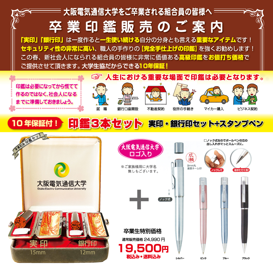 ご不明な点がございましたら、大阪電気通信大学生協寝屋川購買部印鑑係(電話:072-821-0720)までお問い合わせください。