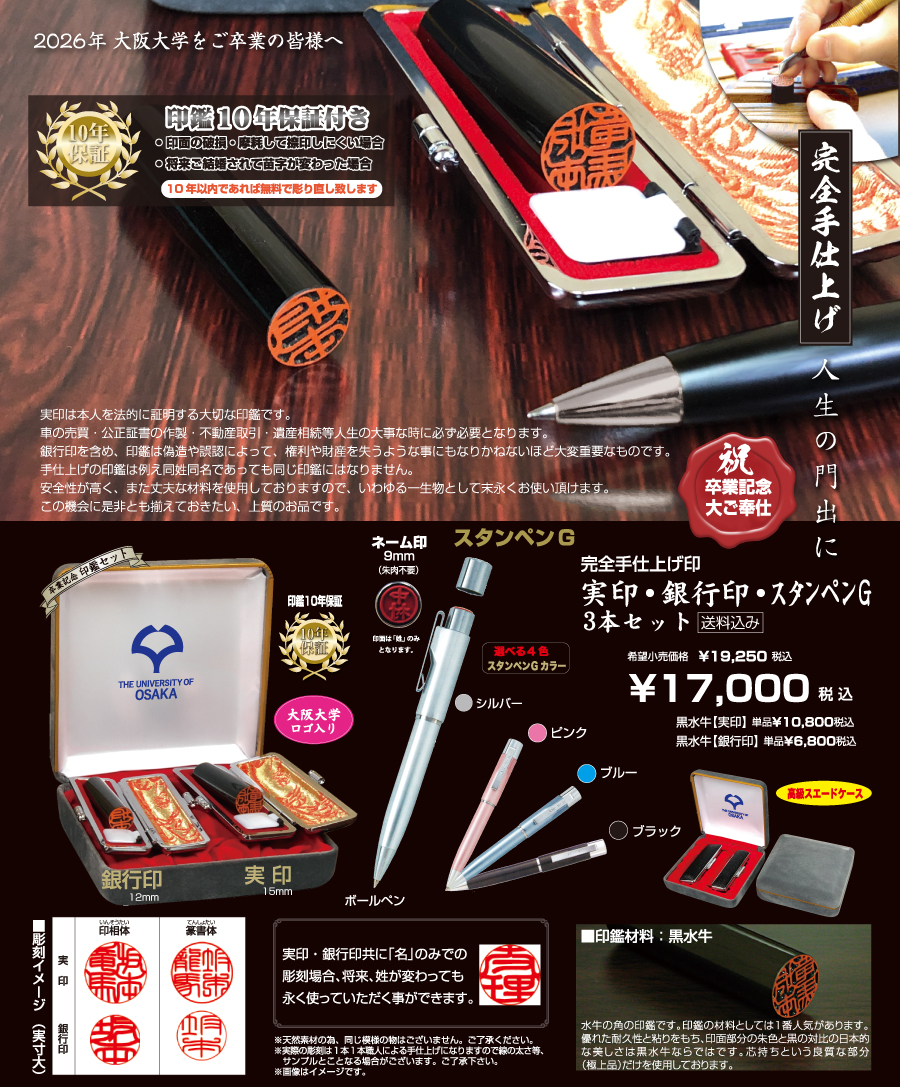本サイトは本校を卒業し新社会人となる皆様に実印・銀行印のセットをご注文いただくページです。