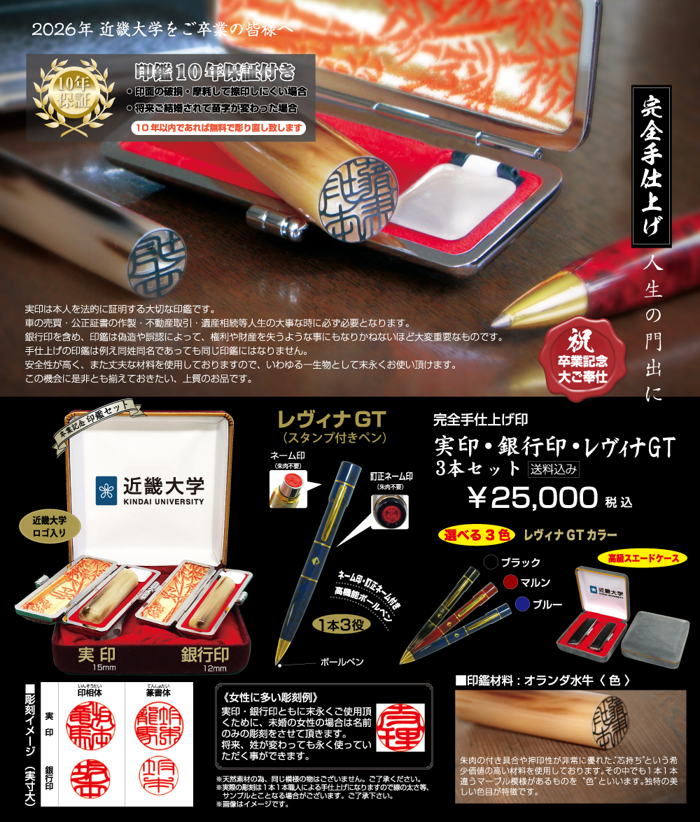 本サイトは本校を卒業し新社会人となる皆様に実印・銀行印のセットをご注文いただくページです。